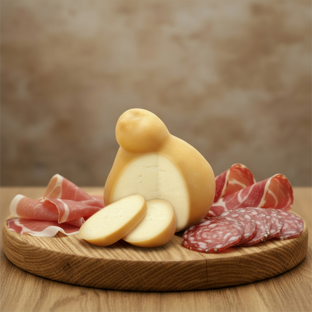 Formaggio tipico ottenuto da latte vaccino locale e lavorato secondo metodo artigianale. Crosta dorata, profumo delicato di latte e burro, pasta elastica che fonde in filamenti morbidi. Un assaggio autentico dei pascoli calabresi, ricco di gusto e tradizione.